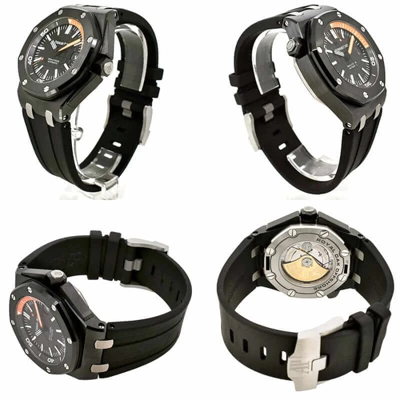 The Audemars Piguet Royal Oak Offshore 15707CE.OO.A002CA.01 replica is a perfect 1:1 clone of the original. It features a 904L stainless steel case and bezel, both in black, and a sapphire crystal. The 42.00mm case is 13.9mm thick. The rubber bracelet is adjustable and has a 904L stainless steel pin clasp. The black dial has stick indices and Royal Oak hour-markers, and the hands are 904L stainless steel stick. The movement is an automatic AP 3120 with a power reserve of 60 hours and a precision of (-3/+3 sec/day) within COSC certification limits. It also has the same arrangeable serial numbers and cards, font, punto, and finishing for writings and markings as the original. Japanese mechanism watches may have different materials and movements, so please contact our support team for more information.