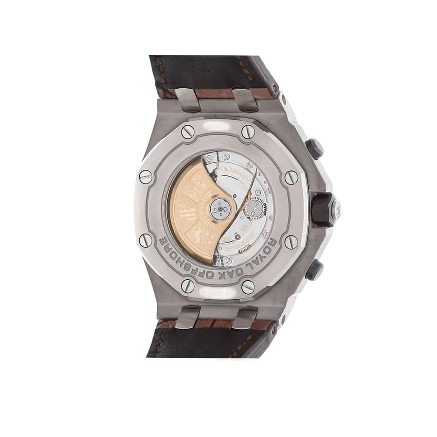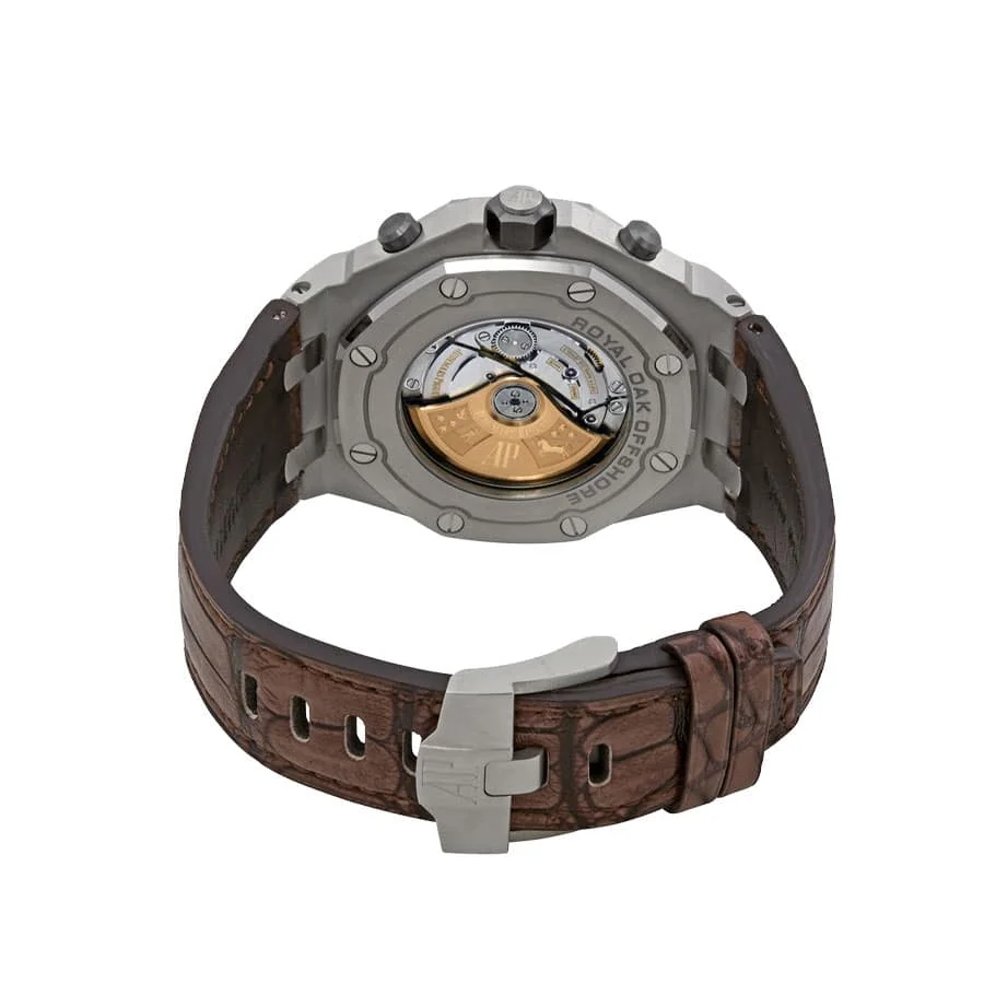 It is made with the same arrangeable serial numbers and cards, font, punto, and finishing for writings and markings, thickness, and size as the authentic watch. This ensures that even your jeweler won’t be able to tell the difference. For Japanese mechanism watches, materials and movements may differ from the Swiss mechanism watches. The Audemars Piguet Royal Oak Offshore Replica 26470ST.OO.A820CR.01 is a 1:1 super clone Swiss mechanism watch. It features a 904L stainless steel case and bezel, with a sapphire crystal and a steel color. The movement is an automatic AP 3126 / 3840 caliber with a 60-hour power reserve and a precision of (-3/+3 sec/day) within COSC certification limits. The dial is brown with Arabic numerals and 904L stainless steel hour markers and hands. The bracelet is a Royal Oak style with adjustable links, made of crocodile skin and a 904L stainless steel pin clasp.
