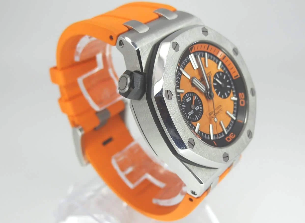 This Audemars Piguet Royal Oak Offshore Replica watch is a perfect 1:1 clone of the original. It features a 904L stainless steel case and bezel, with a sapphire crystal and a 42.00mm size and 14.75mm thickness. The orange rubber bracelet is adjustable and has a 904L stainless steel thorn clasp. The orange dial has stick and dot indices, Royal Oak hour-markers, and 904L stainless steel stick hands. The movement is an automatic AP 3124 / 3841 caliber with a 60-hour power reserve and a precision of (-3/+3 sec/day) within COSC certification limits. This watch is a perfect clone of the original, with all the same markings, writings, and features. It has the same powerful movement and caliber, and even the same serial numbers and cards. Not even your jeweler can tell the difference! Japanese mechanism watches may have different materials and movements, so please contact our support team for more information and videos.