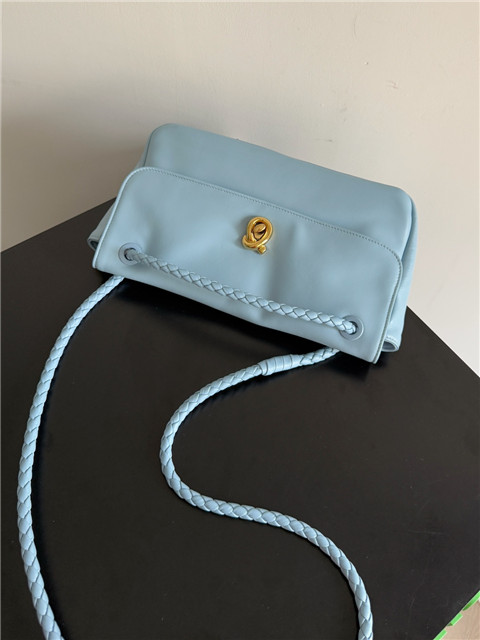 Shoulder bag in supple lambskin with malleable memory flap, sculptural knot closure, and sliding cross-body strap.