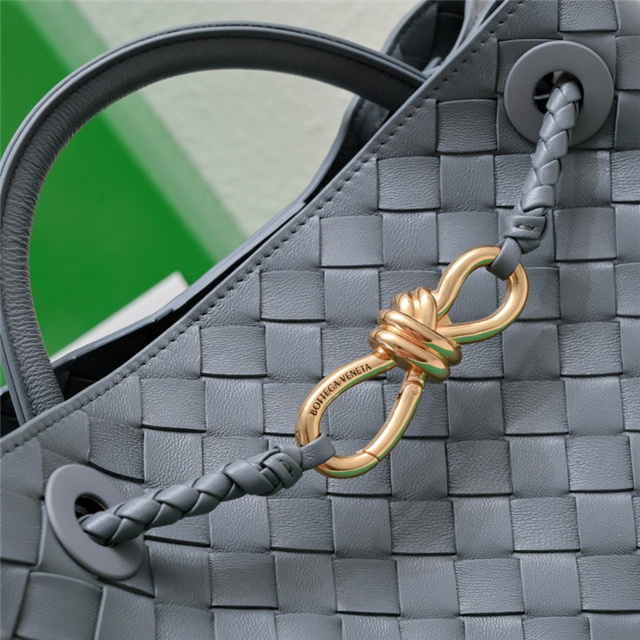 Top handle bag in supple Intrecciato leather with signature knot detail and sliding cross-body strap.