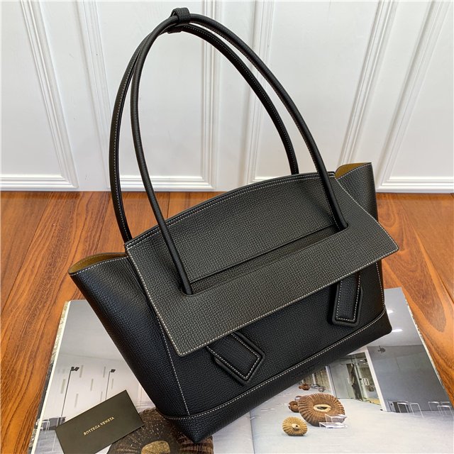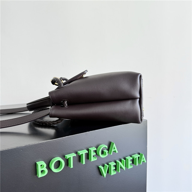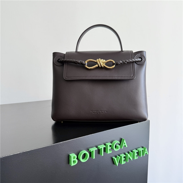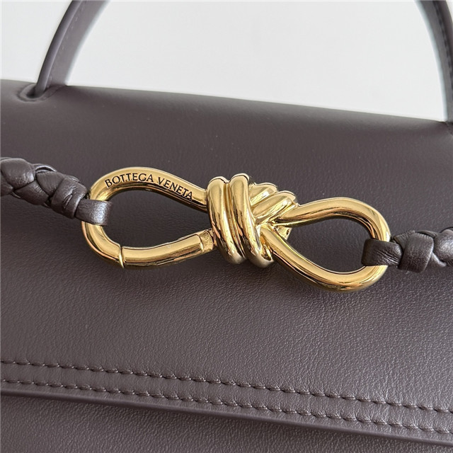 Top handle bag in silky calf leather with two-way flap and signature knot detail. Features a hidden hook closure, allowing the flap to be closed in the front or attached to the interior Intrecciato pocket.