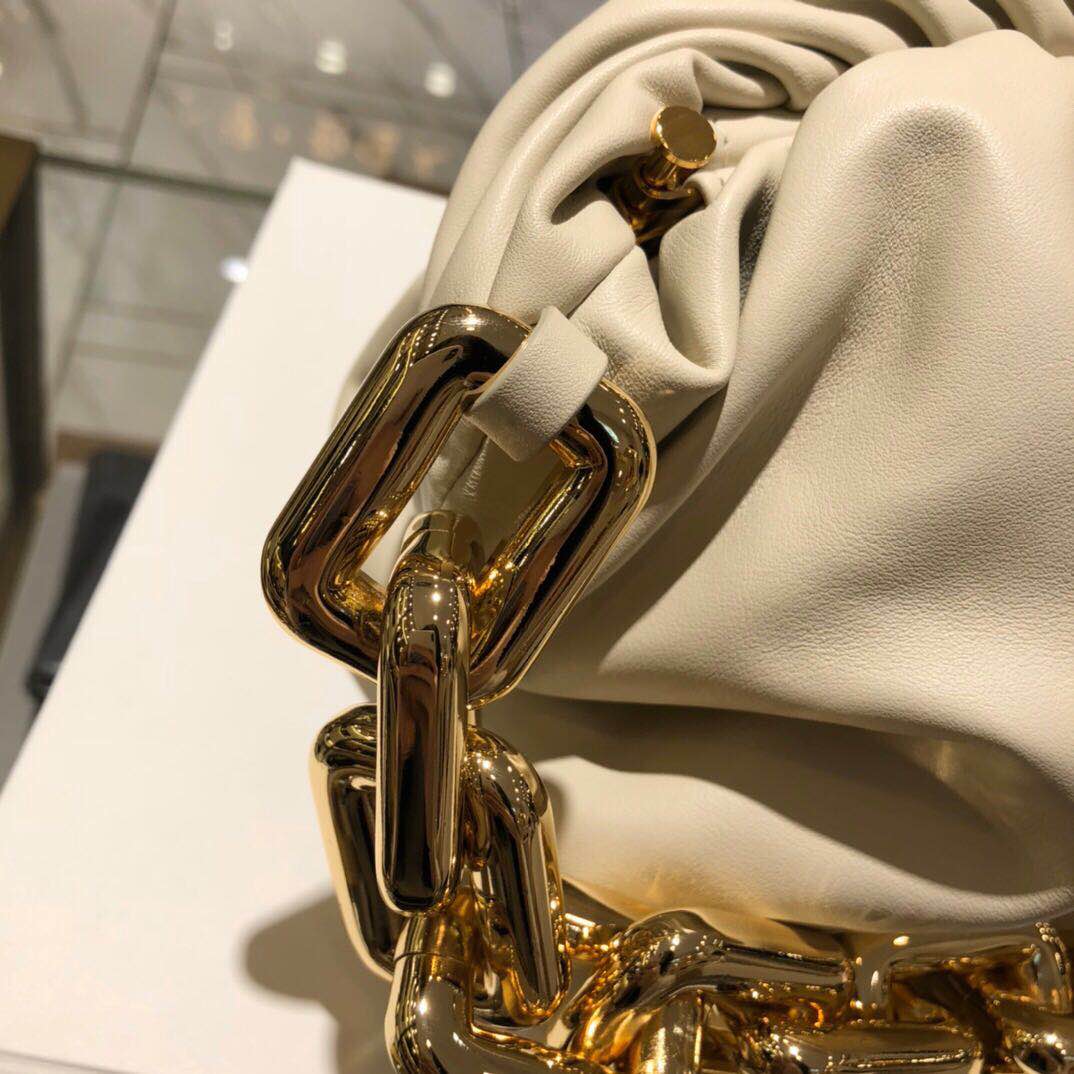 Bottega Veneta updates its cult Pouch bag with a chunky golden chain handle.