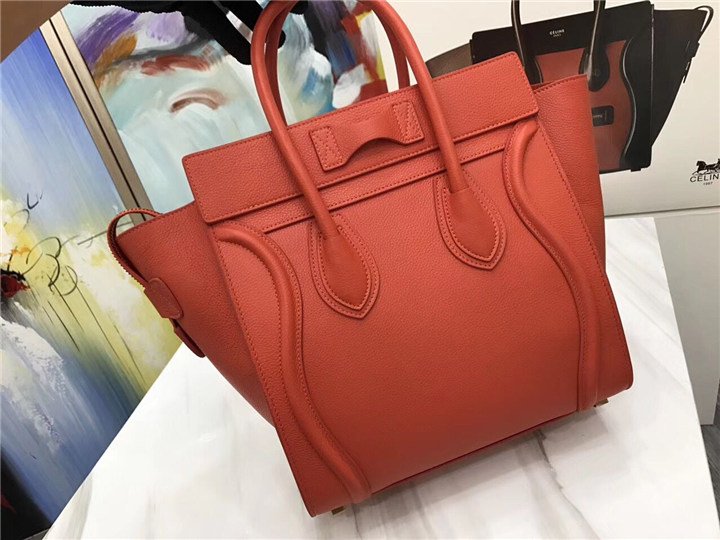 Celine Micro Luggage Tote Orange Pebbled Leather