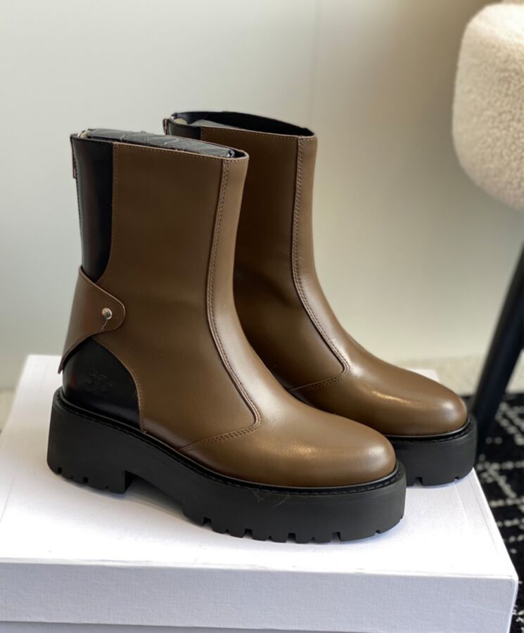 Leather Flap Covering Metal Zip At The Back Of The Shoe