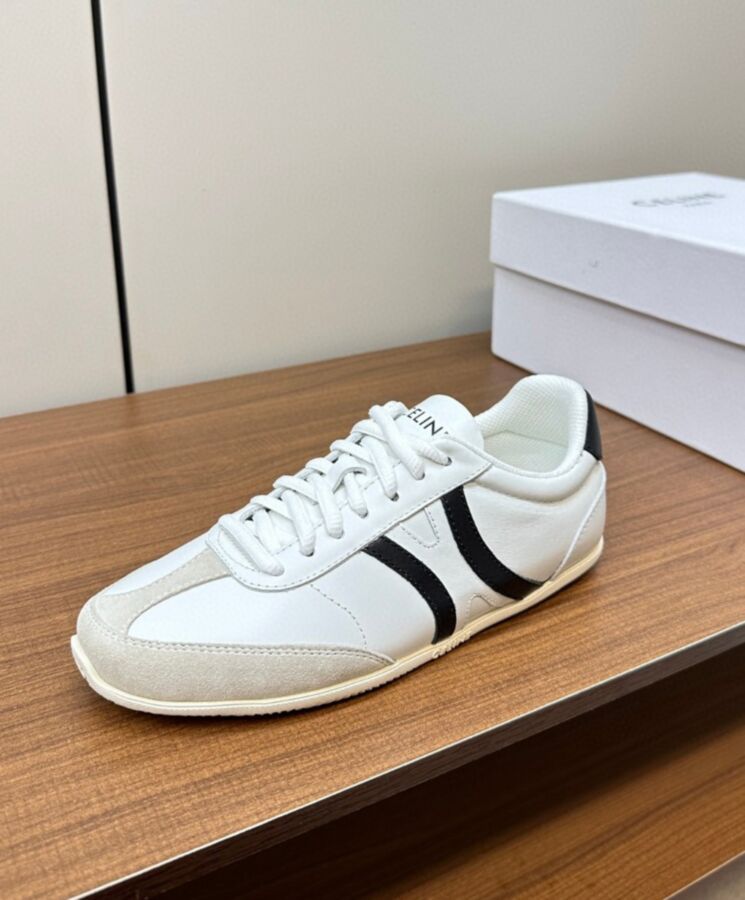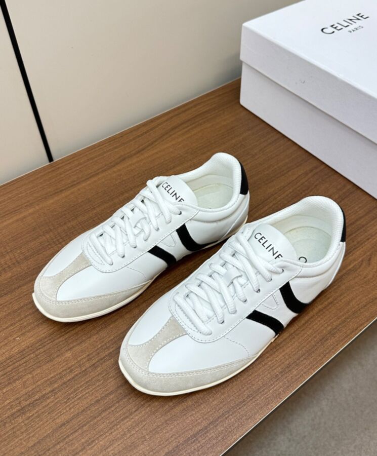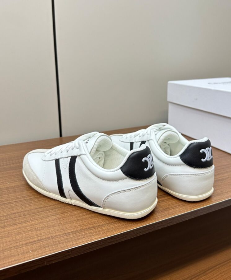 100% Calfskin 100% Textile Lining Triomphe Leather Cut Outs Celine On The Tongue Triomphe Embossed At The Back Of The Shoe Celine Embossed On The Side Of The Outsole Cotton Laces Textile Insole Rubber Outsole
