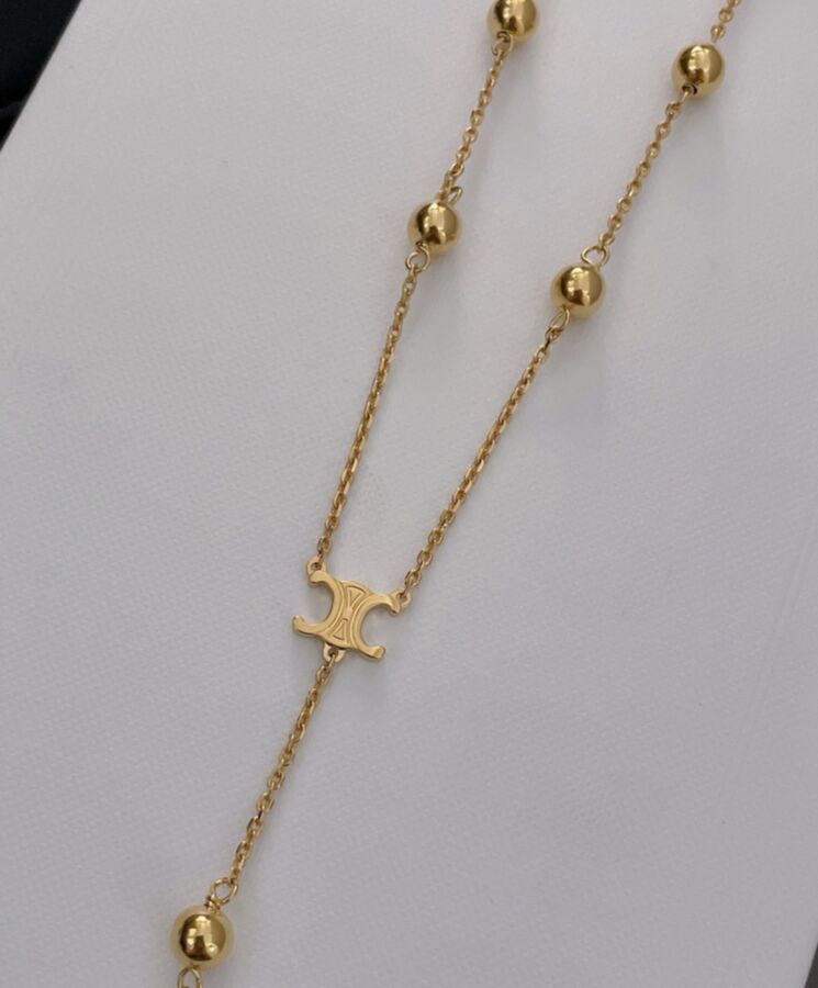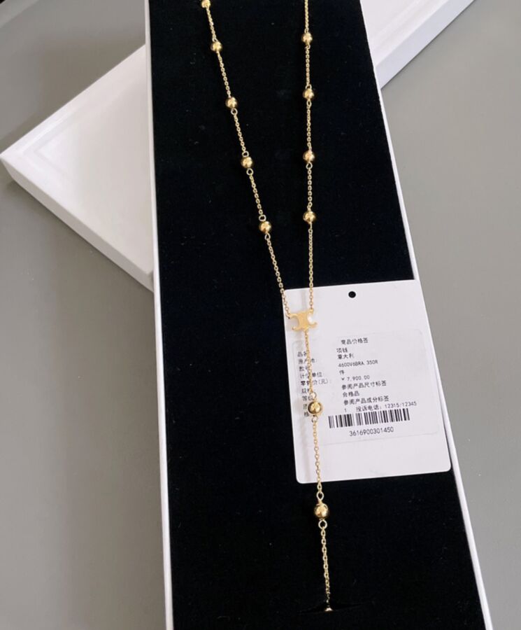 Total Length 31 In (79 Cm) Adjustable To 30.3 In (77 Cm) Additional Adjustable Ring At 29.5 In (75 Cm) Pendant Dimension : 5.12 In (13 Cm) Brass Nickel Free Celine Paris Signature Engraved Snap Hook