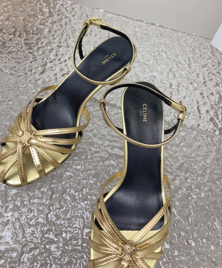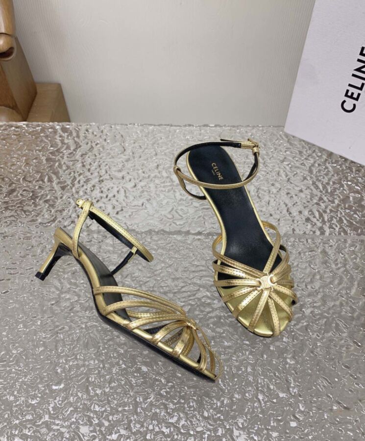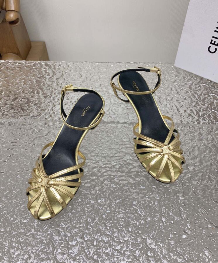 100% Lambskin 100% Kidskin Lining 2 In (50 Mm) Heel Almond Toe Shape Metal Triomphe On The Center Of The Straps Thin Leather Straps Toe With Cage Effect Celine Engraved Adjustable Buckle Leather Insole Leather Outsole