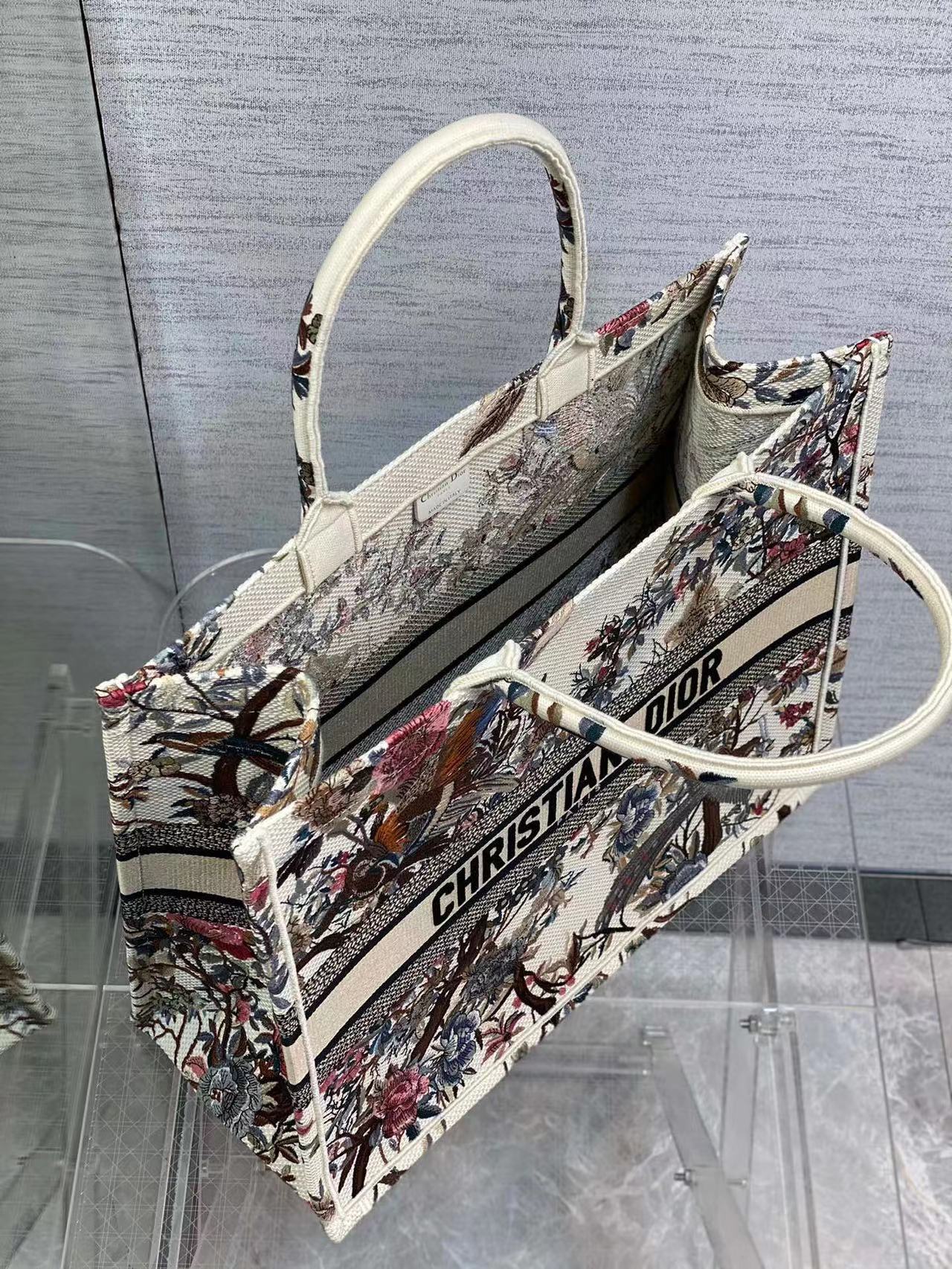 Christian Dior Book Tote In Ecru Multicolor Dior Jardin d’Hiver Embroidery (White)