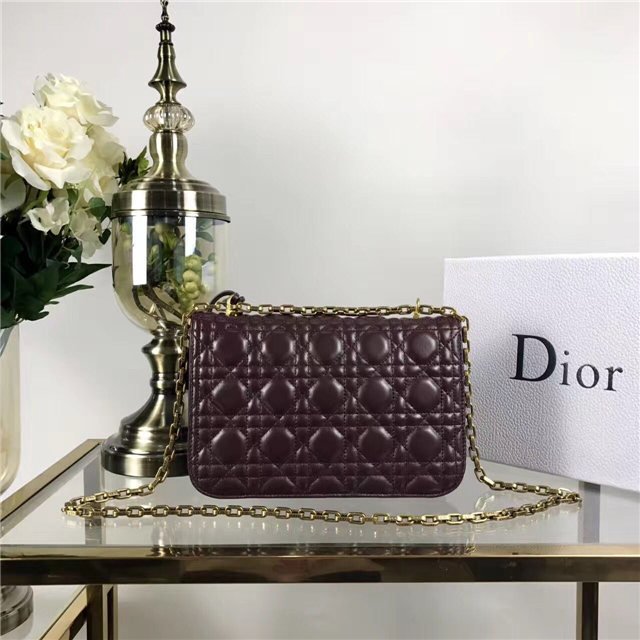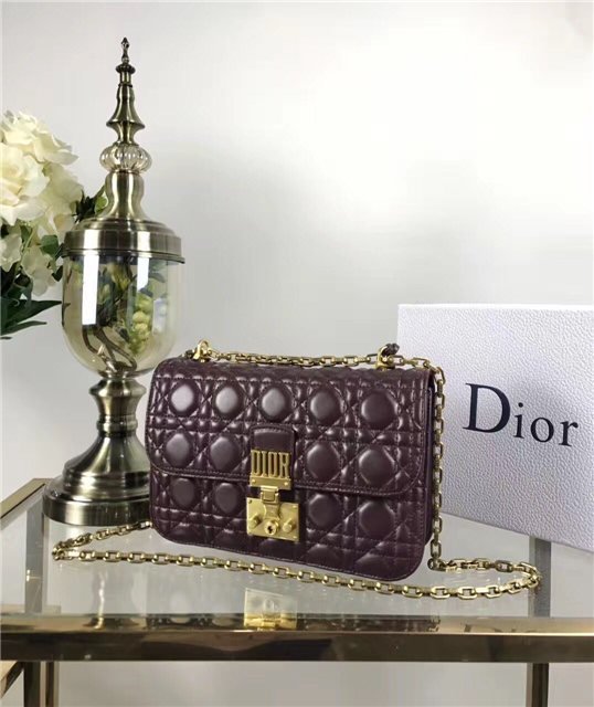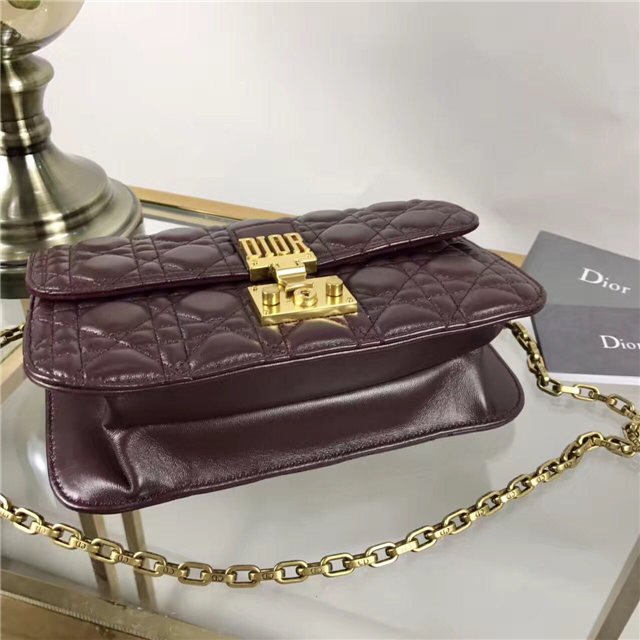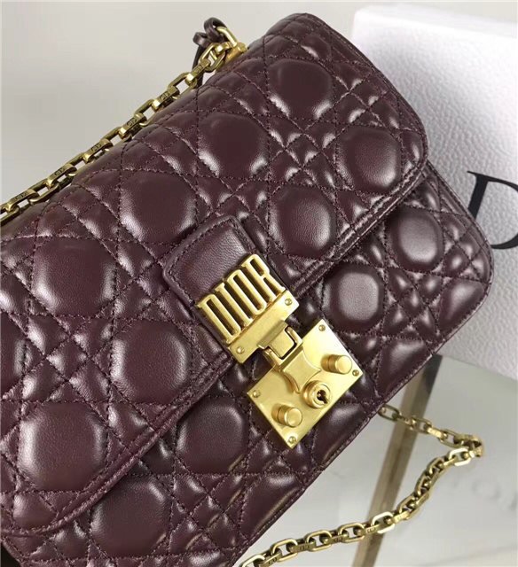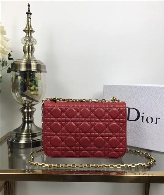“Dioraddict” flap bag in Red Cannage lambskin, signature clasp and detachable chain in aged gold-tone metal.