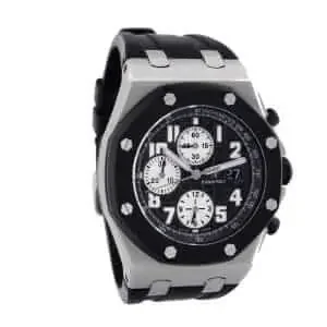 This Audemars Piguet Royal Oak Offshore Replica watch is a perfect 1:1 clone of the original. It features a 904L stainless steel case with a black bezel, a sapphire crystal, and a 42.00mm size and 14.50mm thickness. The black rubber bracelet is adjustable for all sizes and has a 904L stainless steel AP folding clasp. The anthracite black dial has Arabic numerals and 904L stainless steel hour markers and hands. The movement is an automatic AP 2326 / 2840 caliber with a 60-hour power reserve and a precision of (-3/+3 sec/day) within COSC certification limits. The watch has a sweep second hand and functions for hours, minutes, small seconds, date, and chronograph. This watch is the perfect clone of the original and even your jeweler won’t be able to tell the difference!