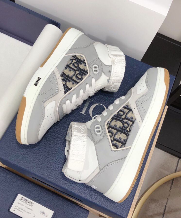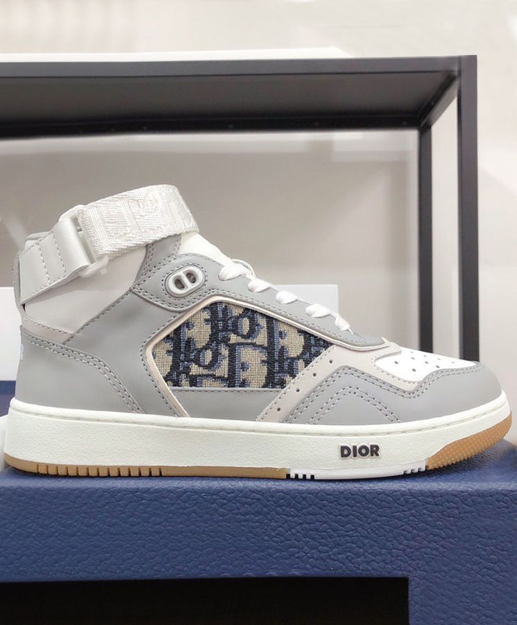 Although brand new for this collection, the B27 high-top sneaker is already a House essential. Crafted in smooth calfskin, the style is adorned with Dior Oblique jacquard inserts on the sides. The sneaker is enhanced with ‘CD Icon’ eyelets as well as numerous emblematic details on the two-tone rubber sole, tab and back. An adjustable Dior Oblique strap completes the design. The high-top sneaker will enhance any favorite look.