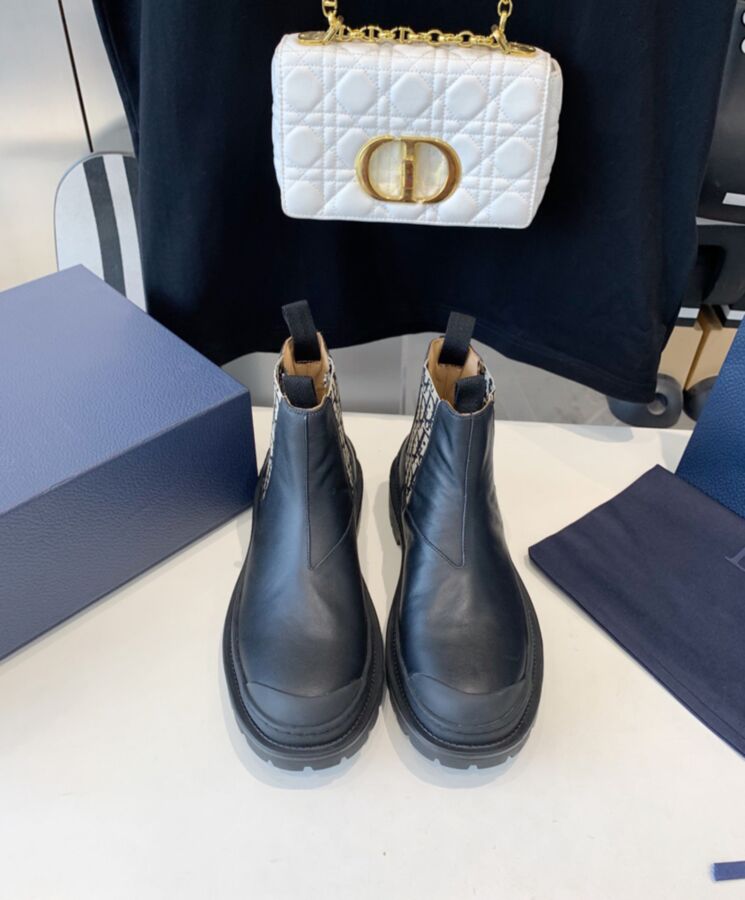 The Dior Explorer ankle boot reimagines the Chelsea boot in a couture variation. Crafted in smooth calfskin, the style features elastic bands on the sides with a Dior Oblique motif. The streamlined design is further completed by a tonal notched rubber sole with a DIOR signature. The elegant ankle boot may be worn with any seasonal outfit.