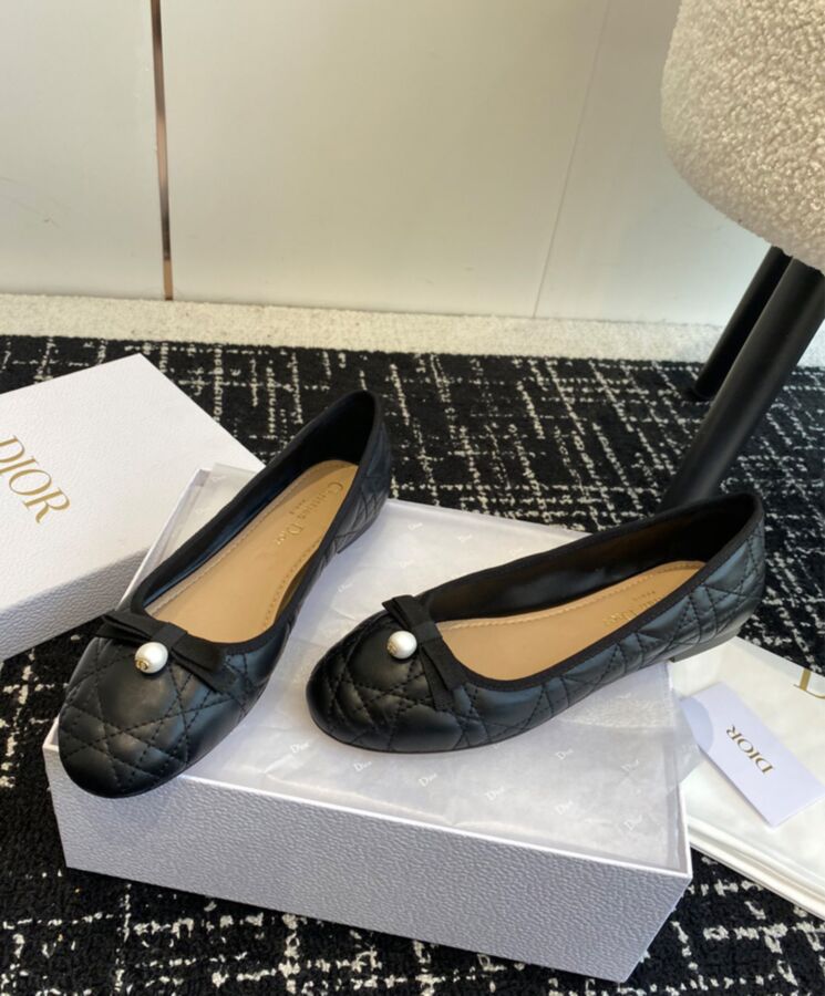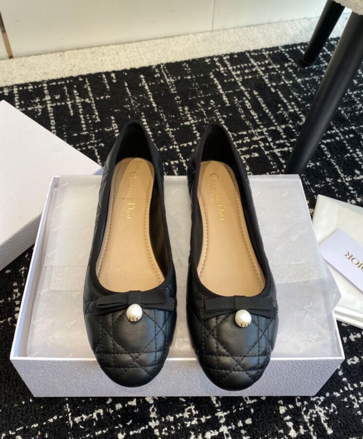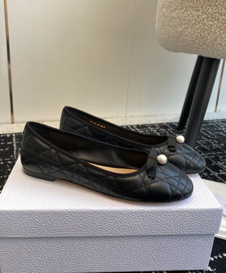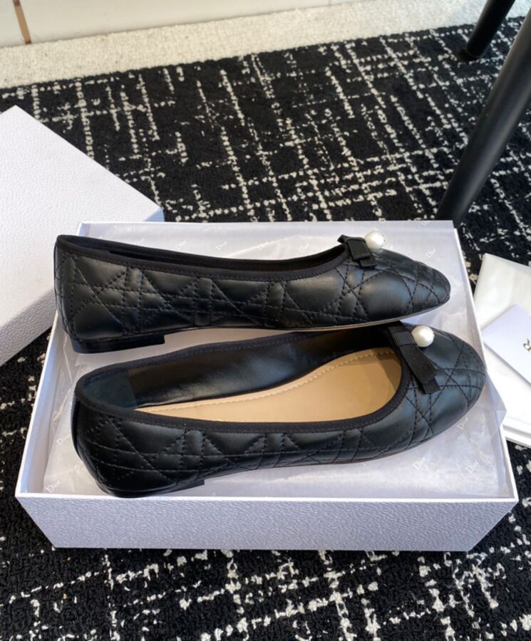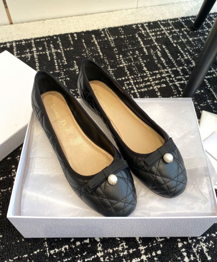 New for the Cruise 2024 collection, the Dior Ballet flat revisits a timeless pattern with elements of House couture. Crafted in quilted calfskin with the Cannage motif, it is distinguished by a delicate grosgrain bow on the front adorned with a white CD resin pearl inspired by the iconic Dior Tribales earrings. Thanks to a padded leather insole, the supple, comfortable ballet flat will add the finishing touch to all of the season’s looks.