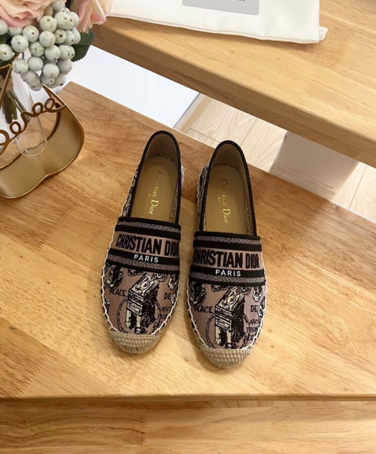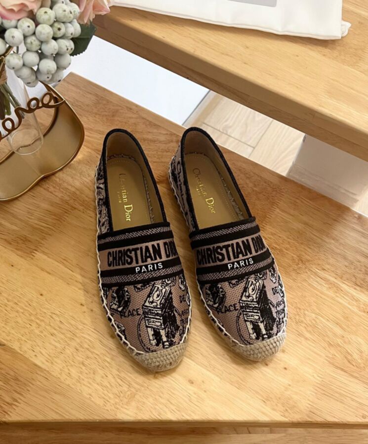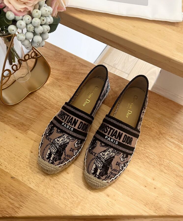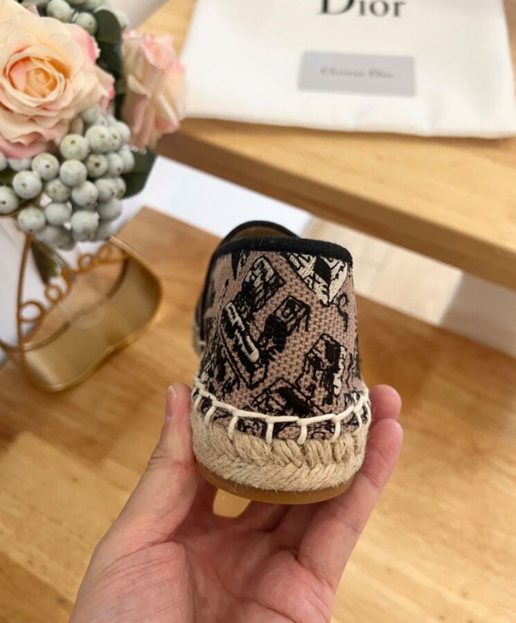 The Dior Granville espadrille features the Plan de Paris motif, inspired by House archives and structured around Dior’s historic Avenue Montaigne address. Crafted in beige and black embroidered cotton, it is embellished with iconic House details like the Dior Paris signature on the upper. The shoe has a rope sole made in a traditional manner and may be coordinated with other Plan de Paris creations from the collection.