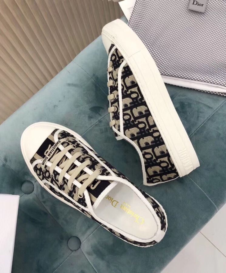 Canvas Sneaker embroidered with blue Dior Oblique motif. “Dior” signature on the tongue and laces Additional set of laces Rubber sole with logo Black contrasting star on the sole, one of Dior’s favourite symbols