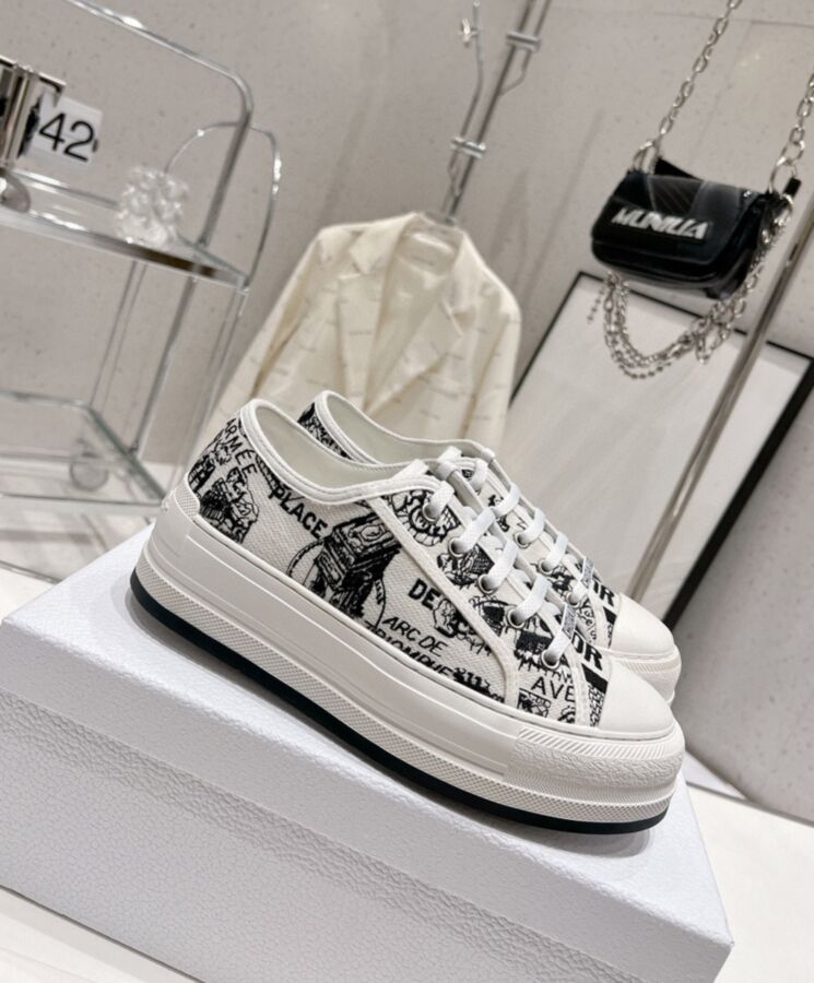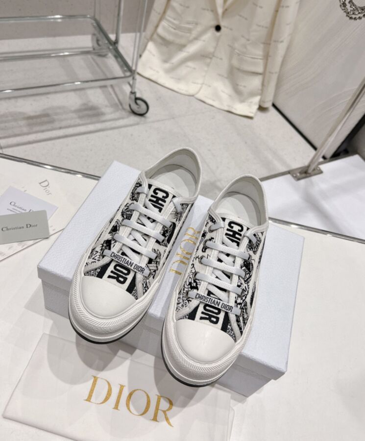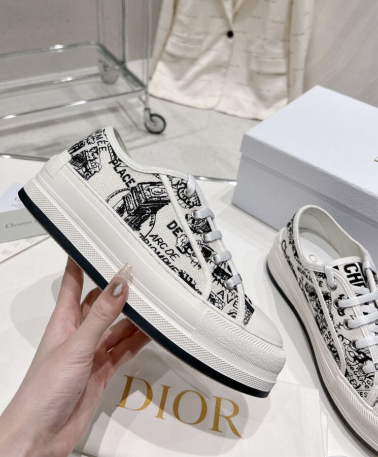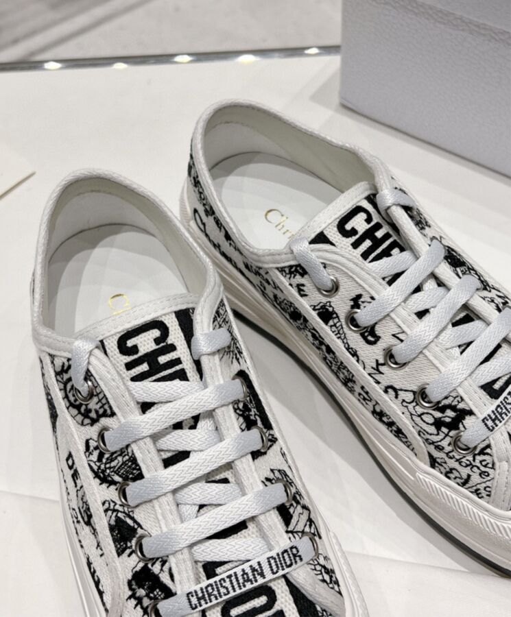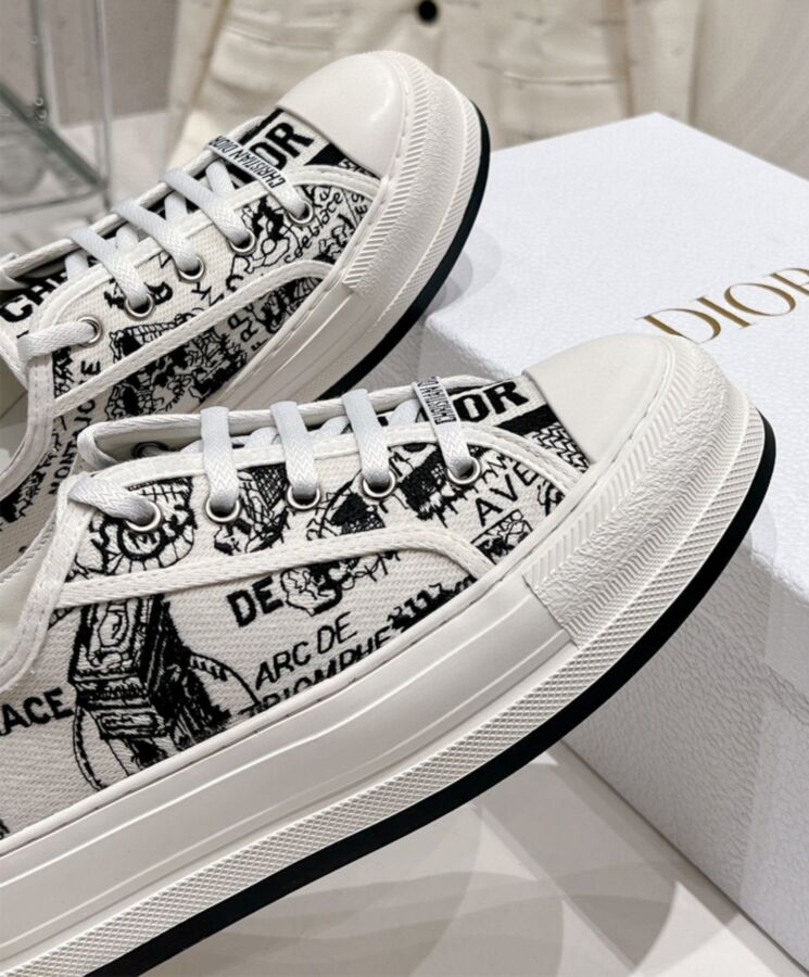 The Walk’n’Dior platform sneaker enhances the line with a modern creation. The embroidered cotton upper showcases the season’s signature Plan de Paris motif, inspired by House archives and centered around Dior’s historic address on Avenue Montaigne. The style is completed with a comfortable thick sole, tongue and Dior Paris laces. The sneaker will add a contemporary touch to any laid-back look.
