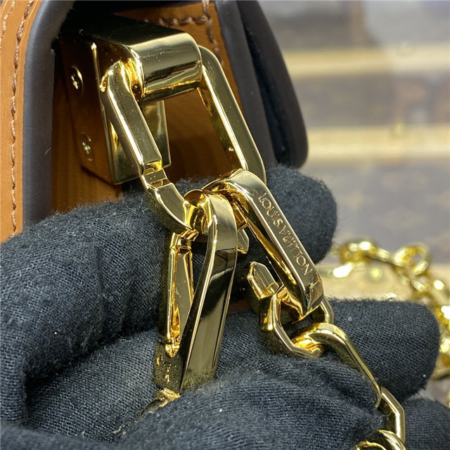 The Dauphine East-West Monogram handbag canvas sports a fashionably elongated silhouette, echoed in the Dauphine iconic rectangular LV closure. The interplay of two complementary Monogram canvases – classic and Reverse – lends this piece a signature appeal. The leather shoulder strap and the golden chain are both removable, offering a variety of styling options.