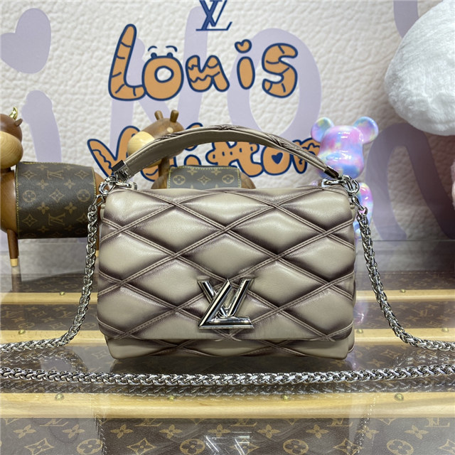 Part of the Spring-Summer 2024 Collection, the GO-14 MM handbag is fashioned from quilted lambskin with a toasted finish. The silver-tone LV Twist lock and removable sliding chain bring a crisp counterpoint to the earthy colorway. Fitted with both a removable sliding chain and a detachable leather handle, the bag provides multiple styling options.