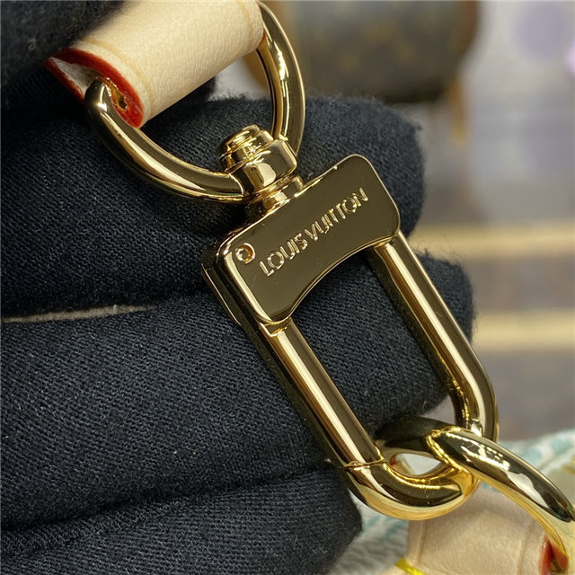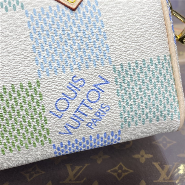 This Speedy Bandoulière 20 handbag is made from Damier Giant canvas in a fresh colorway that combines four different pastel shades, thanks to a precise digital printing technique. Inspired by the House’s classic travel bag, the distinctive shape has two rolled-leather top handles and a detachable and adjustable strap for shoulder and cross-body wear.