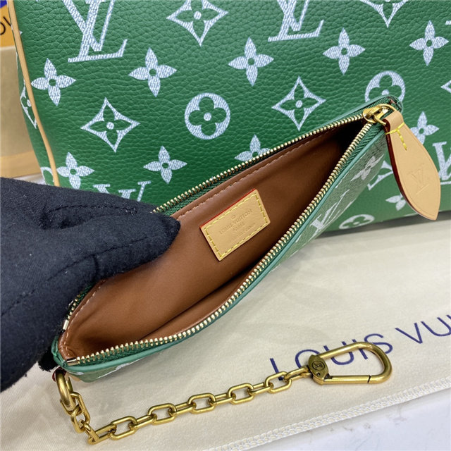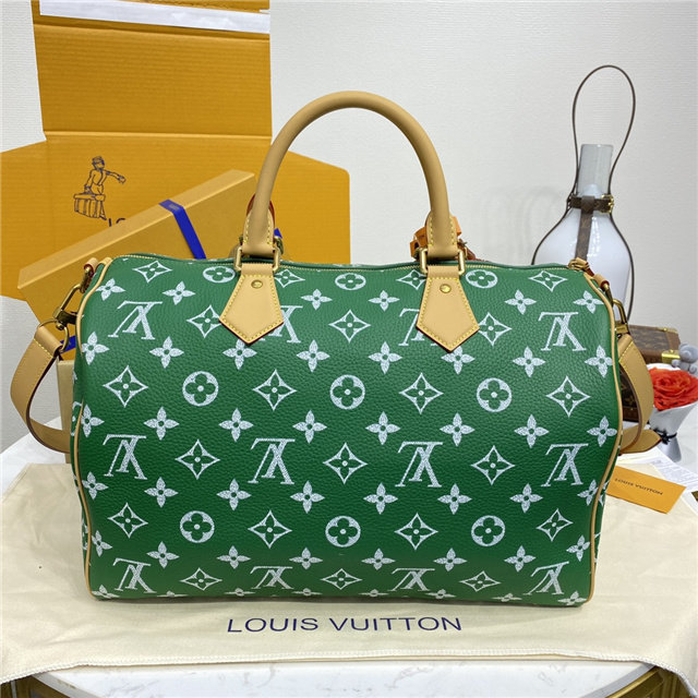 Working with naturally supple grained calfskin, Creative Director Pharrell Williams has given this Speedy P9 Bandoulière 40 Monogram Leather a super-soft feel. The Monogram is printed on bright leather in a high-end silk-screen technique that perfectly reproduces the almost blurry effect of Monogram printed on canvas. This Speedy is fully lined with ultra-luxurious lambskin leather.