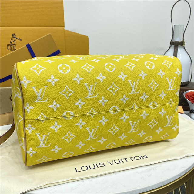 Working with naturally supple grained calfskin, Creative Director Pharrell Williams has given this Speedy P9 Bandoulière 40 Monogram Leather a super-soft feel. The Monogram is printed on bright leather in a high-end silk-screen technique that perfectly reproduces the almost blurry effect of Monogram printed on canvas. This Speedy is fully lined with ultra-luxurious lambskin leather.