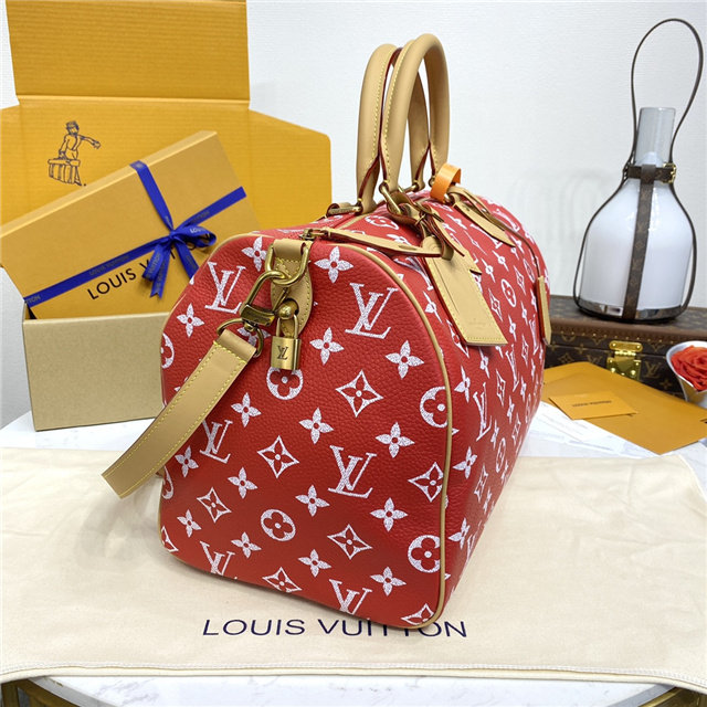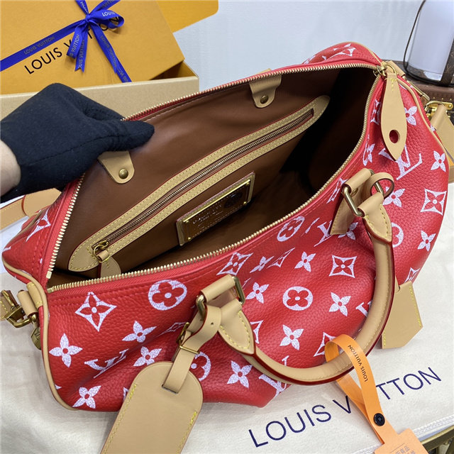Working with naturally supple grained calfskin, Creative Director Pharrell Williams has given this Speedy P9 Bandoulière 40 Monogram Leather a super-soft feel. The Monogram is printed on bright leather in a high-end silk-screen technique that perfectly reproduces the almost blurry effect of Monogram printed on canvas. This Speedy is fully lined with ultra-luxurious lambskin leather.