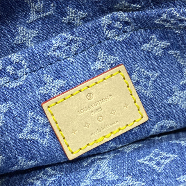 The Sunset handbag is made from Monogram Denim canvas and is adorned with the House”s tuck lock. Creating Monogram Denim is a multi-step process. First the Monogram pattern is woven into the Global Organic Textile Standard-certified cotton which is then bleached. Once assembled, each bag is stonewashed to give it a unique aspect. The Sunset can also be styled for cross-body wear, thanks to an extra extension strap included with the piece.