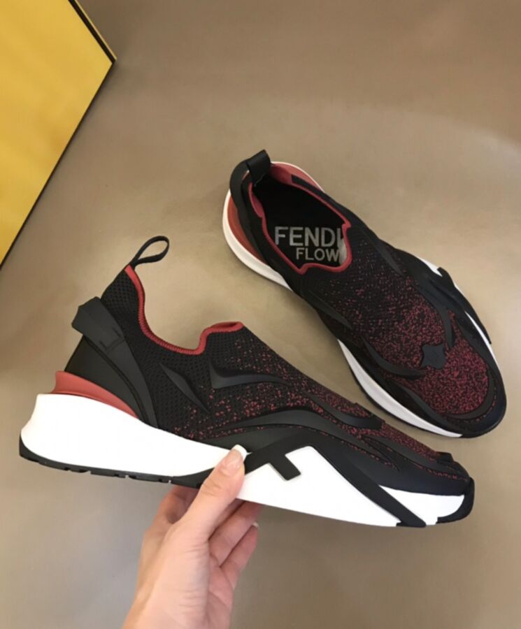 Slip-on sneaker with corrugated sole with engraved F. Fendi Flow lettering embossed on the heels. Made of and acid jacquard mesh. rubber details embellished with innovative artisanal techniques.