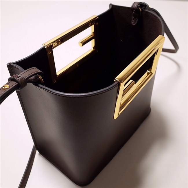 Small Fendi Way bag made of Dark Brown leather with metal handles with oversize FF logo.