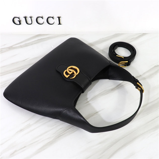 The Gucci Cosmogonie collection was presented against the backdrop of the historic Castel del Monte in Italy. The show brought together aesthetics from distant eras and geographies, and linked elements form the past with the present. This new crescent-shaped shoulder bag was shown on the runway and was inspired by the House’s archives, it is crafted in soft leather and features the Double G emblem—a code originally introduced in the 1970s.