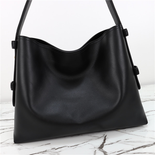 Horsebit detail on the shoulder strap