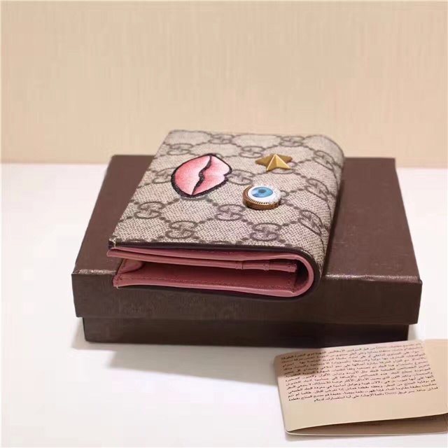 This card case made in our GG Supreme canvas has a star, eye and mouth applique on the front which forms a face.