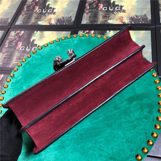 A structured GG Supreme canvas bag with our textured tiger head closure-a unique detail referencing the Greek god Dionysus, who in myth is said to have crossed the river Tigris on a tiger sent to him by Zeus. The sliding chain strap can be worn multiple ways, changing between a shoulder and a top handle bag.