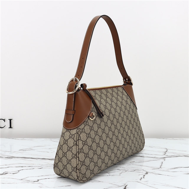 The new GG Emblem collection reinterprets the House’s history of elegance and craftsmanship. This large shoulder bag features numbered notches on the adjustable shoulder strap, inspired by the equestrian world.