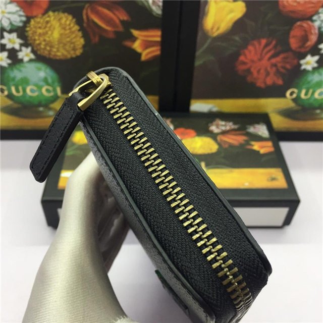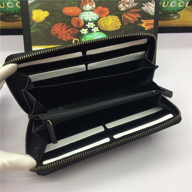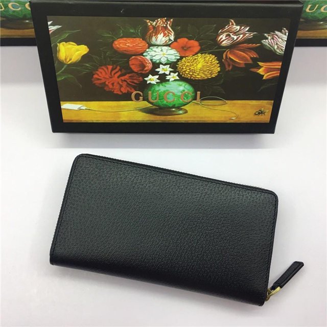 Gucci Leather Zip Around Wallet With Web