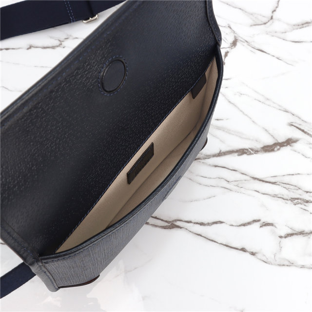 The Ophidia shoulder bags, totes, and top handle bags are presented in new variations of the GG Supreme canvas for Cruise 2024, complete with silver-toned hardware for a touch of metallic contrast. This men”s belt bag combines the Double G hardware with the GG Supreme canvas in a blue and black variation of the classic material. The waist belt strap can be adjusted for versatile ways to wear.