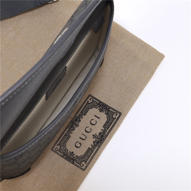Gucci heritage meets contemporary design with the continuation of Ophidia. This men”s belt bag combines the Double G hardware with the GG Supreme canvas in a grey and black variation of the classic material. The waist belt strap can be adjusted for versatile ways to wear.