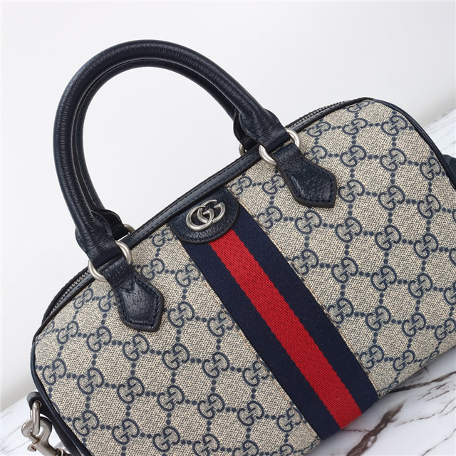 A signature fabric, GG Supreme canvas has become a staple throughout the Gucci universe. Reinterpreted through the Gucci lens, the material appears throughout the latest collections. Here, this small top handle bag is crafted with the all-over monogram motif. Completing the logo feel, the signature Double G hardware completes the style.