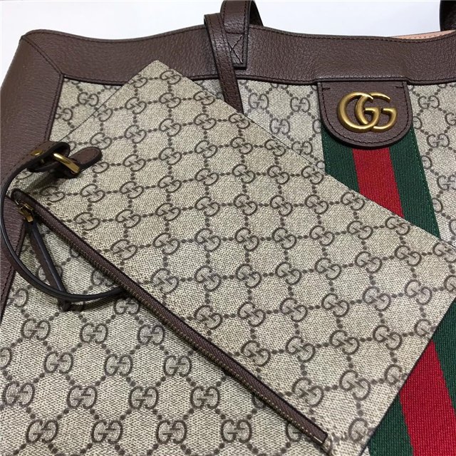 A classic combination of the House’s most recognizable elements—the GG motif and Web stripe—the world of Ophidia continues to evolve, incorporating new shapes and silhouettes. The wide tote is made from supple soft GG Supreme canvas, trimmed with textured leather and topped with Double G hardware.