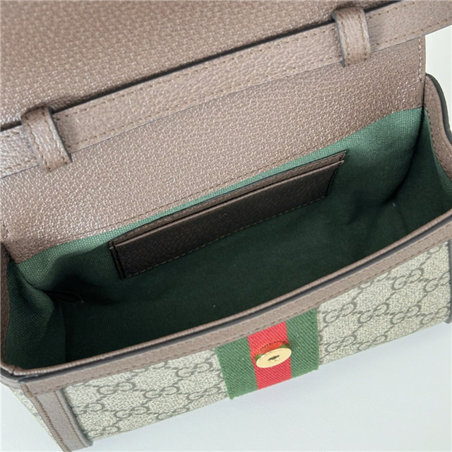 The Ophidia collection evokes the House’s heritage with the signature Web stripe and Double G emblem in light gold-toned finish. The styles are crafted from soft GG Monogram coated fabric, featuring green cotton lining inside.