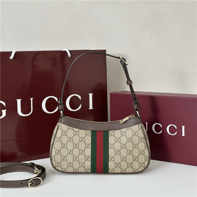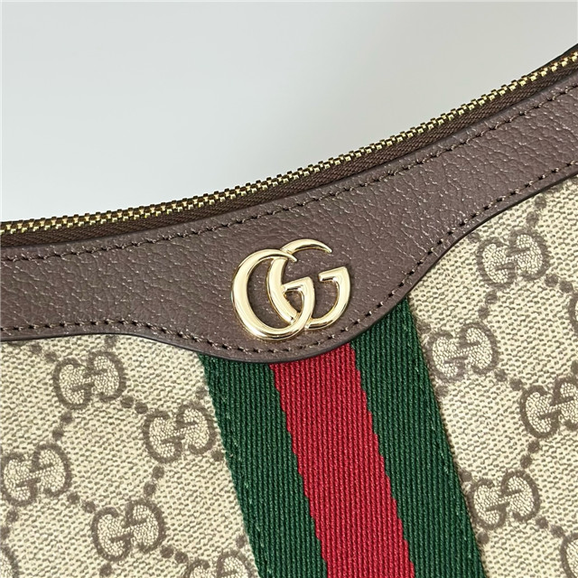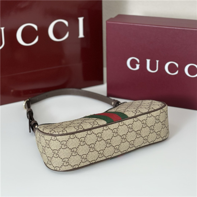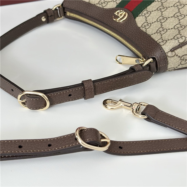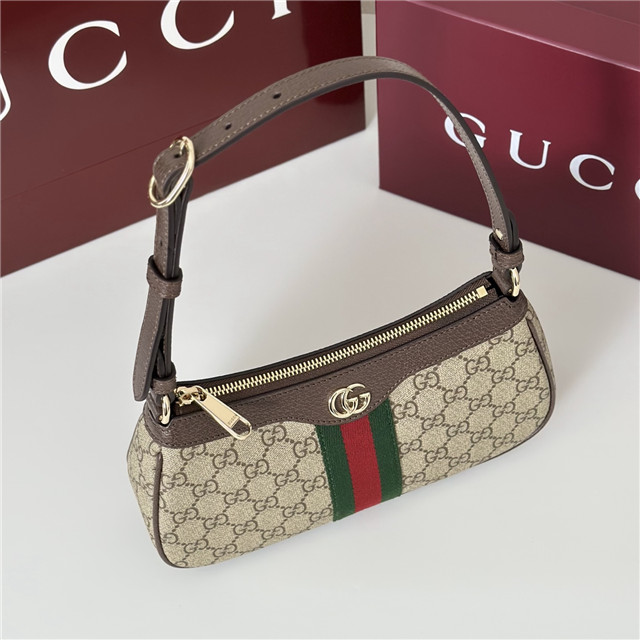 The Ophidia collection evokes the House’s heritage with the signature Web stripe and Double G emblem in light gold-toned finish. The styles are crafted from soft GG Monogram coated fabric, featuring green cotton lining inside.
