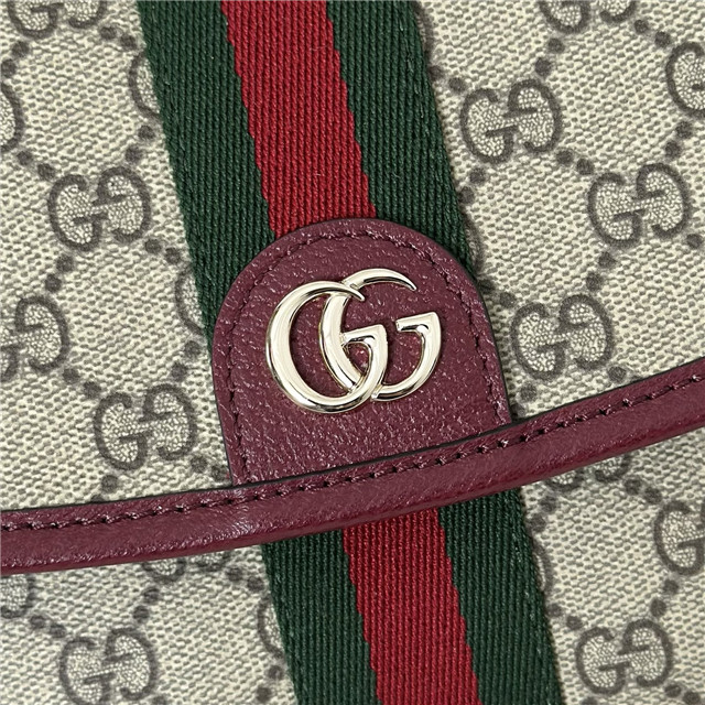 The Ophidia collection evokes the House’s heritage with the signature Web stripe and Double G emblem in light gold-toned finish. The styles are crafted from soft GG Monogram coated fabric, featuring green cotton lining inside.