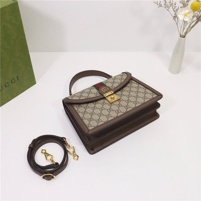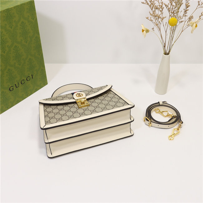 The world of Ophidia continues to evolve with new iterations each season. The top handle bag is presented as part of the Epilogue collection with a detachable shoulder strap. The vintage influenced square shape is accentuated by the House Web stripe and Double G hardware—a contemporary take on a Gucci archival belt buckle from the ”70s. Crafted from the House”s monogram canvas, the style has a strong logo feel.