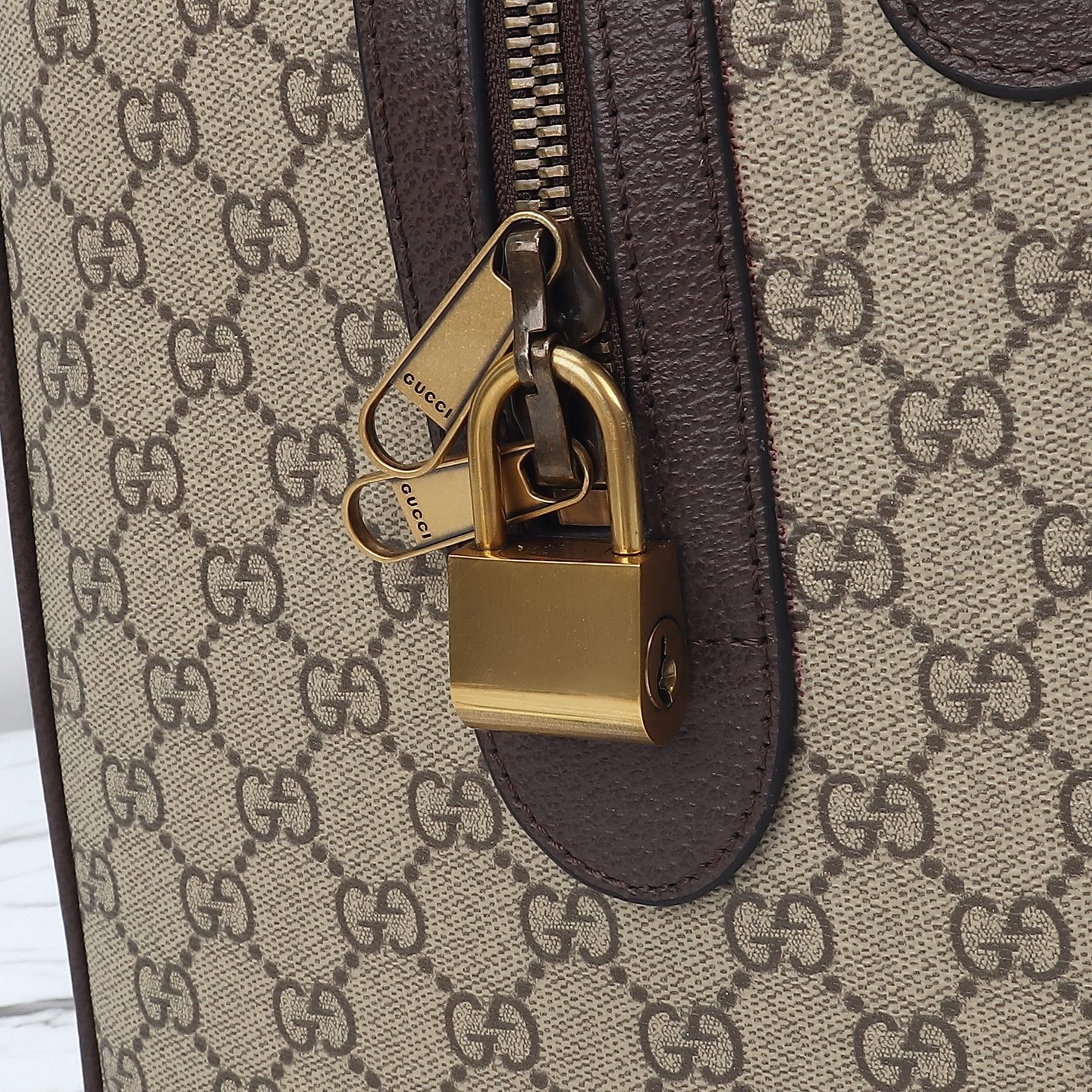 Beige and dark brown GG Monogram coated fabric