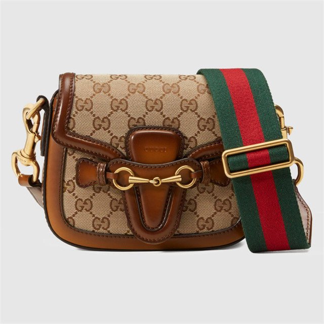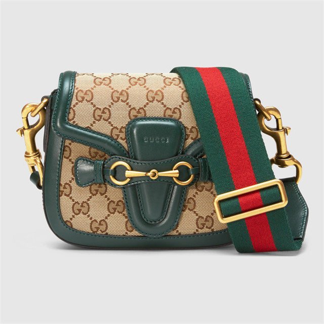 The small Lady Web shoulder bag in our Original GG canvas with leather trim and a web nylon shoulder strap.