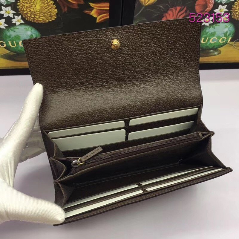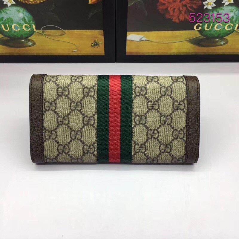First used in the 1970s, the GG logo was an evolution of the original Gucci rhombi design from the 1930s, and from then it’s been an established symbol of Gucci’s heritage. The continental wallet combines the signature motif with the Web stripe—a timeless pairing that pays homage to Gucci’s roots.
