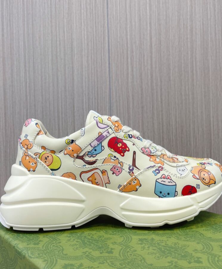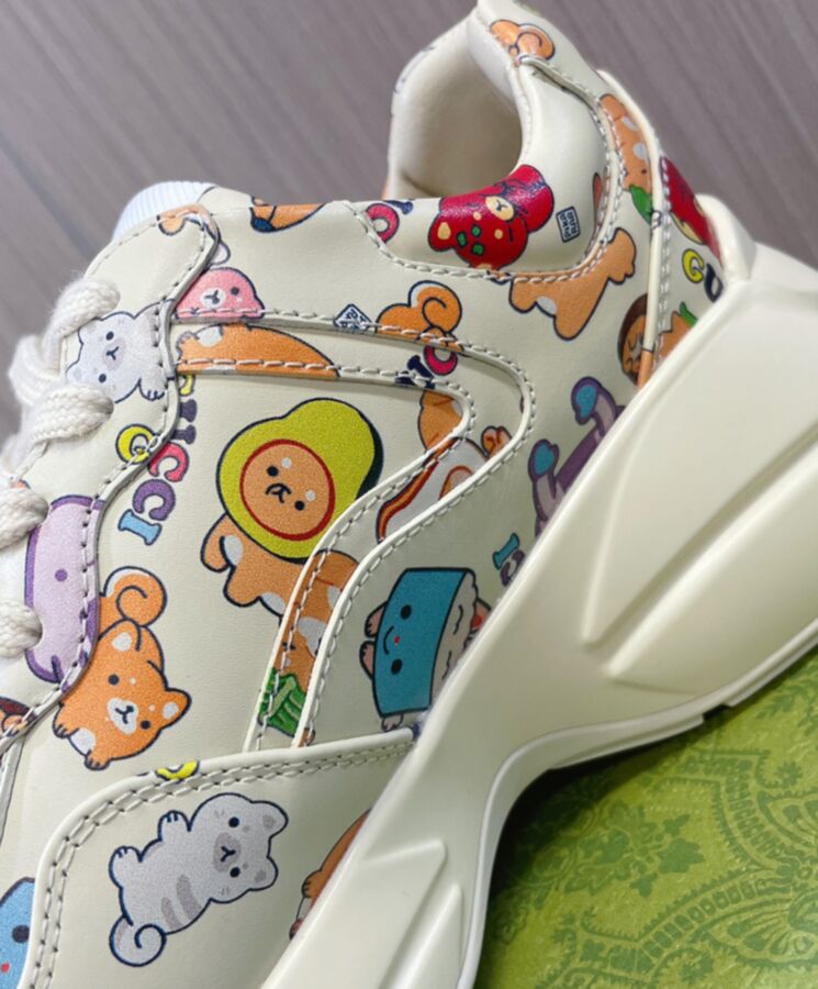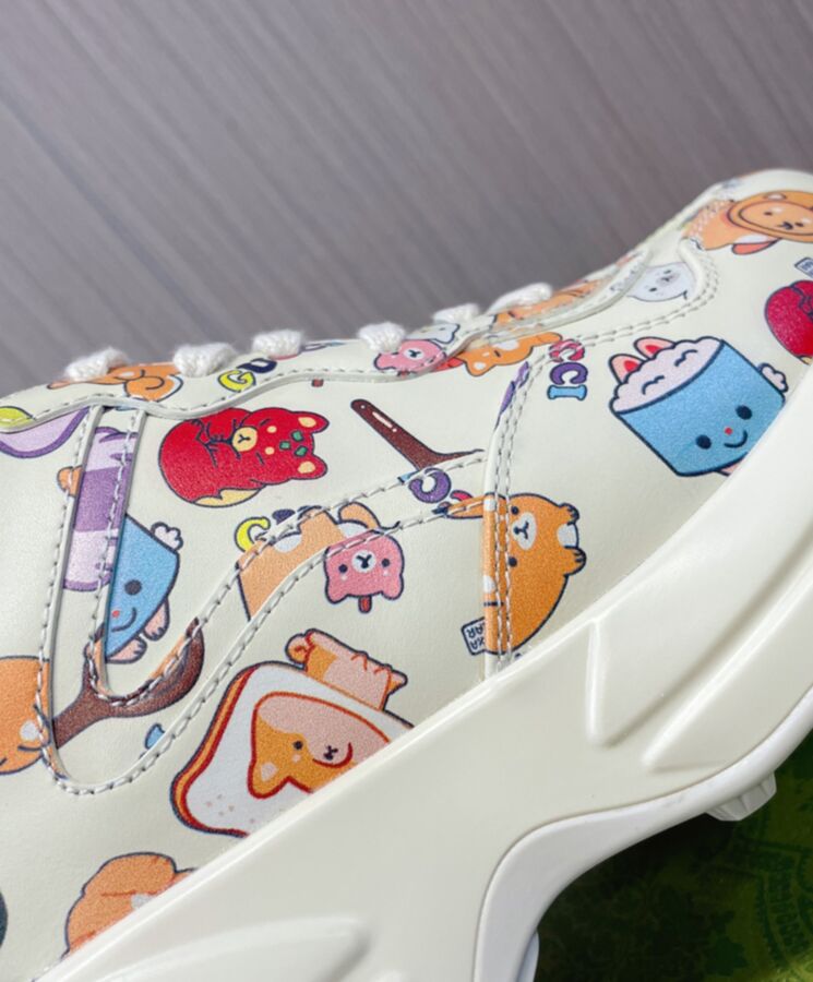 Gucci Unisex Animal Print Rhyton Sneaker 738878 Cream