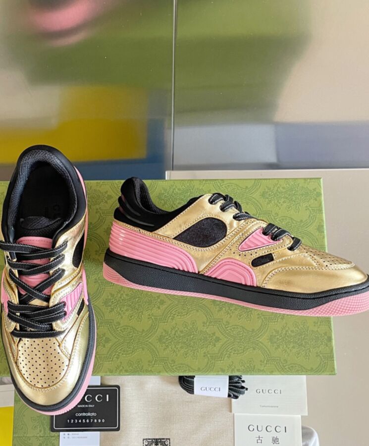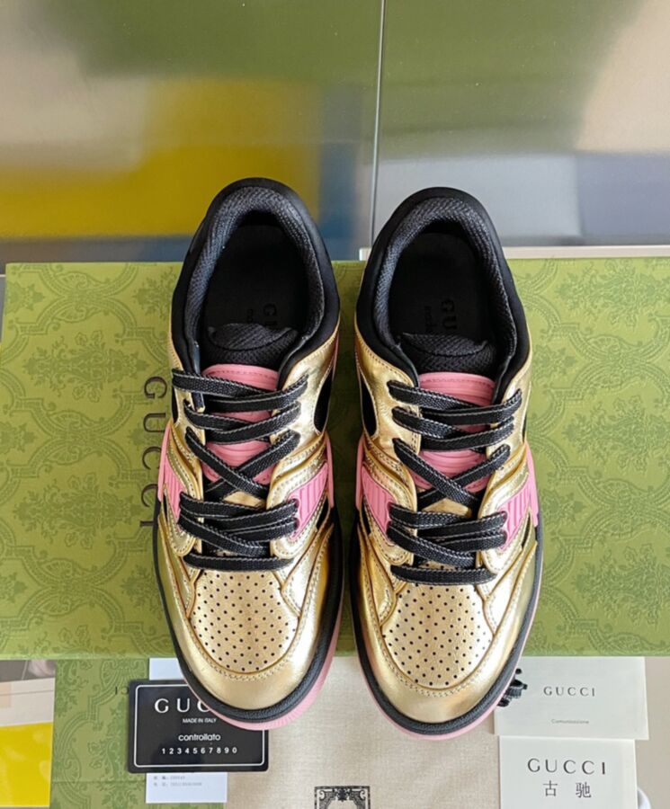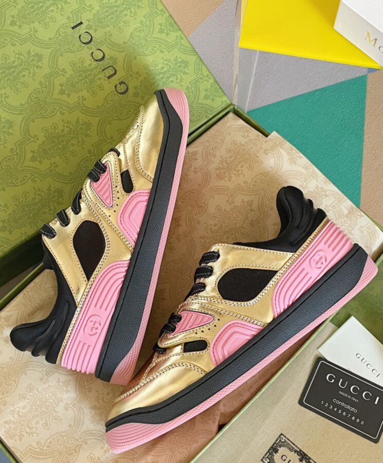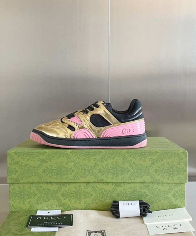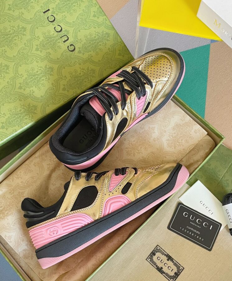 Sporting a look synonymous with basketball sneakers from the 90s, the House presents new interpretations of the Gucci Basket sneaker. This style emulates the self-expression of on-court aesthetic with distinctive features and detailing. Multicolor leather defines this new iteration of this signature design.
