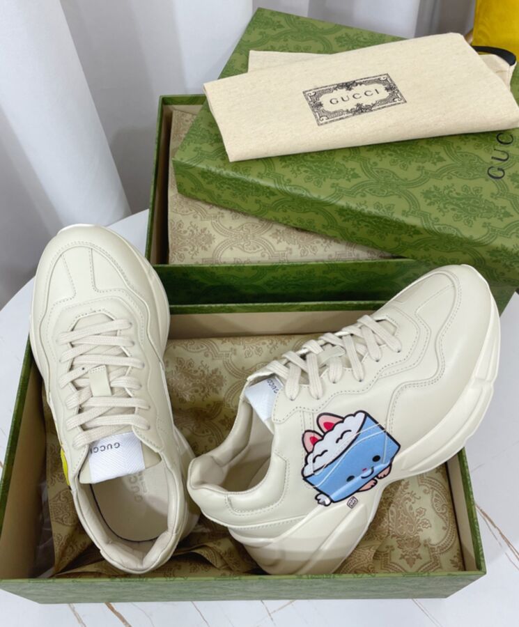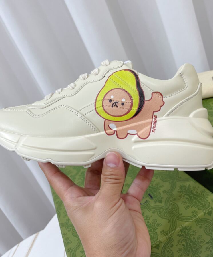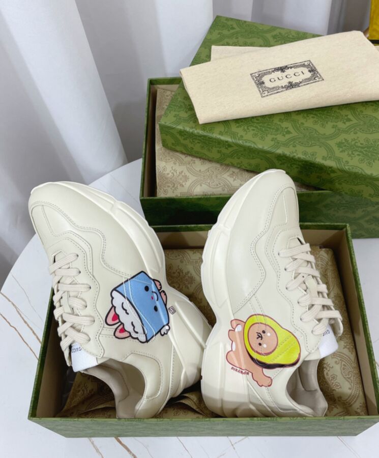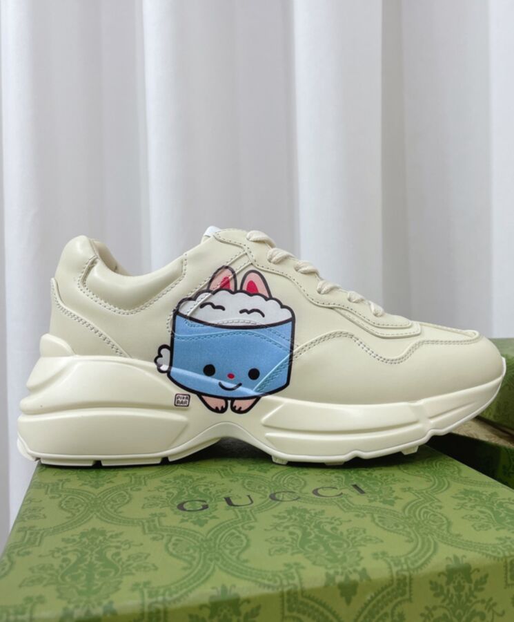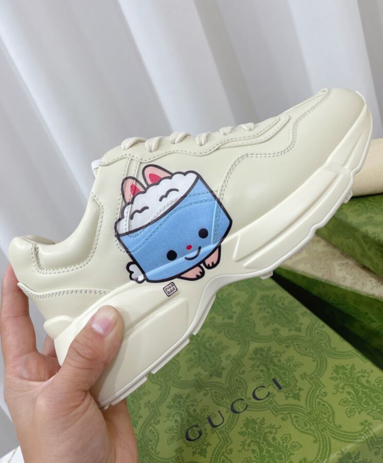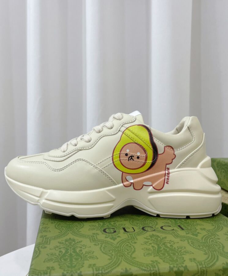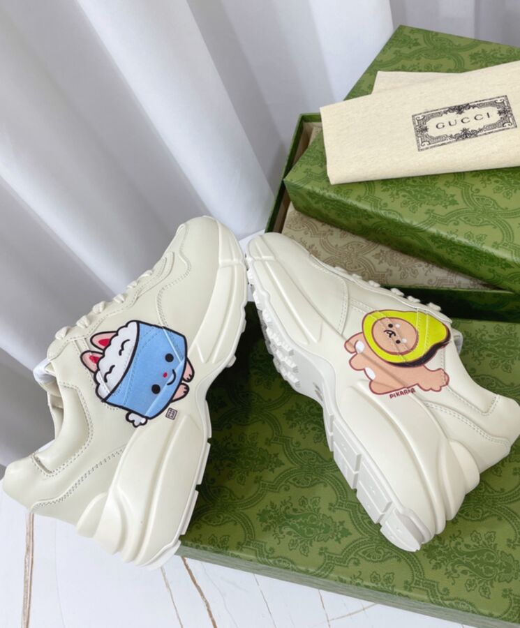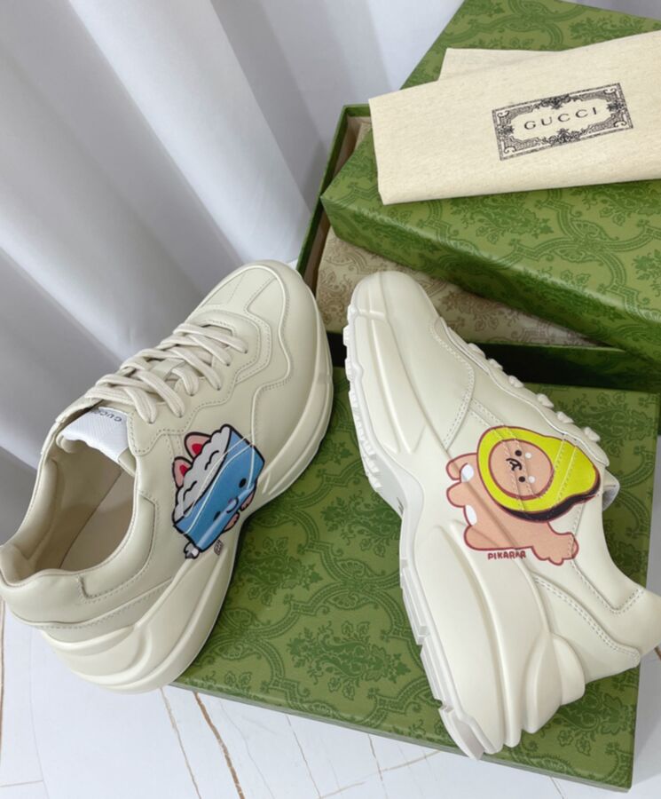 The artwork by America-based illustrator and designer, Angela Nguyen, also known as Pikarar, adds a playful touch to ready-to-wear pieces and accessories with vibrant prints or embroideries inspired by pop culture, anime, and animals. Here this Rhyton sneaker is defined by an animal print.